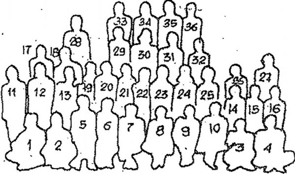 Parados quinta fila: 28 Ernesto Humphreys - 29 Evarista Troncoso - 30 María Brunt - 31 Teodolina Tisnado - 32 Lucila Troncoso.