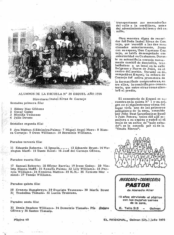 Extracto de la nota del Periódico El Regional de Gaiman, Ch. Julio de 1975